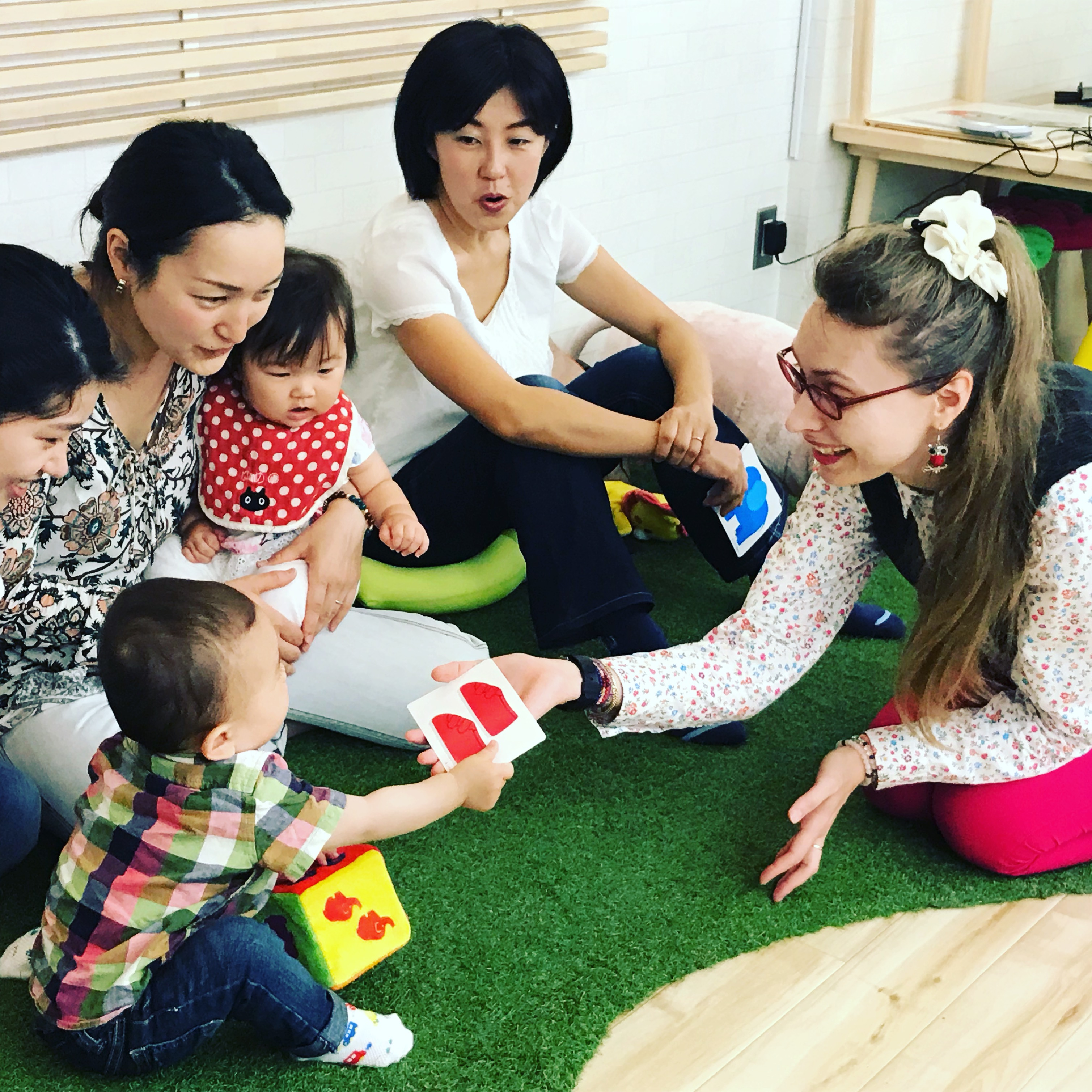 英語の歌を歌ったり、英語絵本を読んだり、ゲームをしたり、英語で数字、カラー、シェイプを学んだり、お子様の年齢に合わせたアクティビティを用意しています。