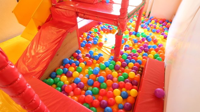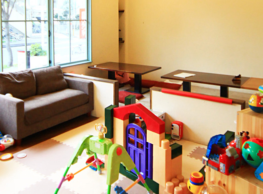 カフェには、赤ちゃんから小学生までが楽しめる玩具、ジャングルジムがあるキッズスペースが設備されているので、ママがレッスン中は、子供達も思いっきり楽しんで頂けます!