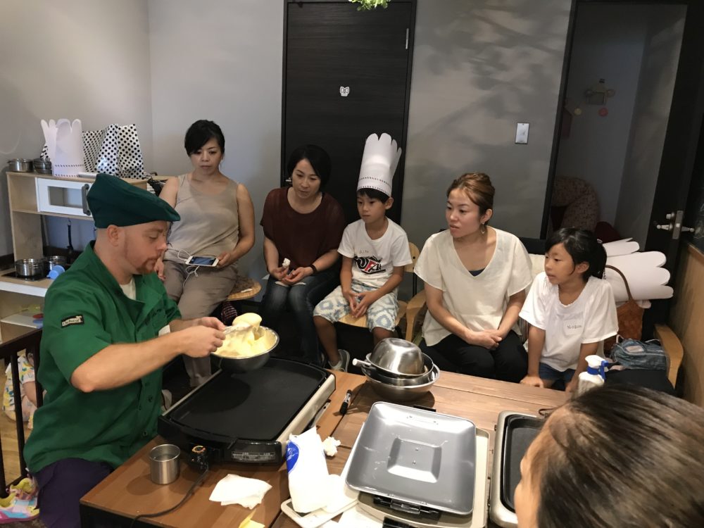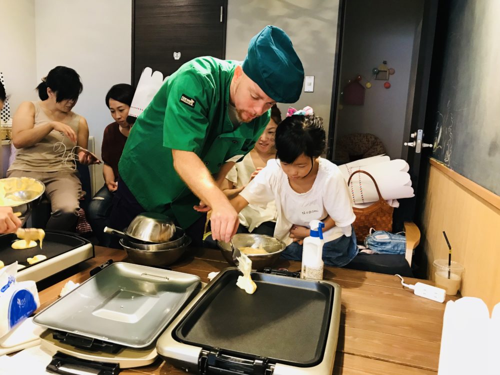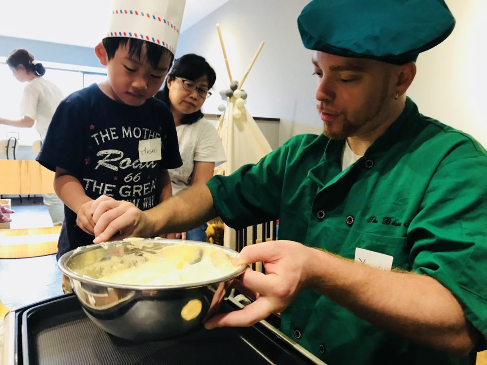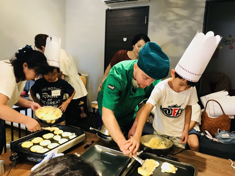 フランス人のヤニック先生と一緒に英語でふわふわパンケーキ作りをしました!