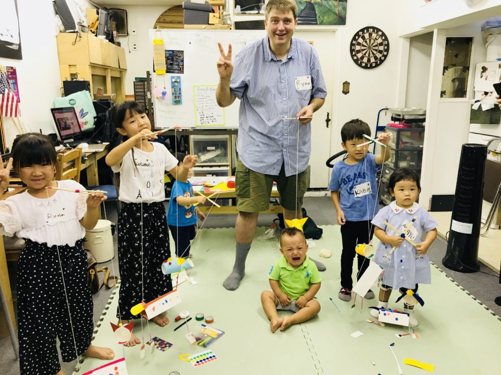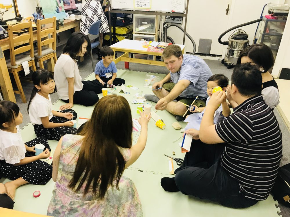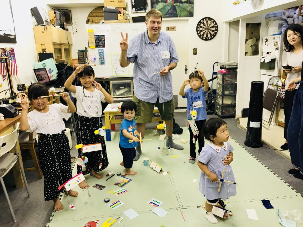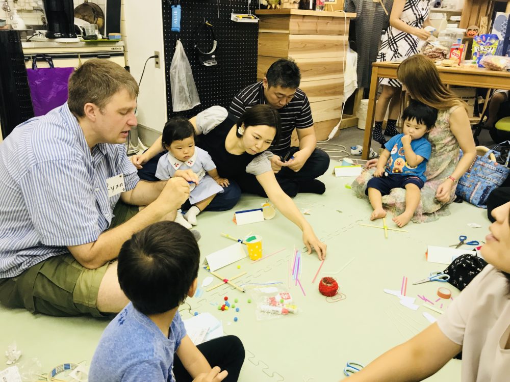 Osaka Maker Spaceを運営する、アメリカ出身の陽気で明るいDIYマスター“ライアン先生”がパペット(操り人形の動物)の作り方を英語で教えて、キッズ&ママ、パパが一緒にワイワイと自分たちのオリジナルパペットを作りました♪