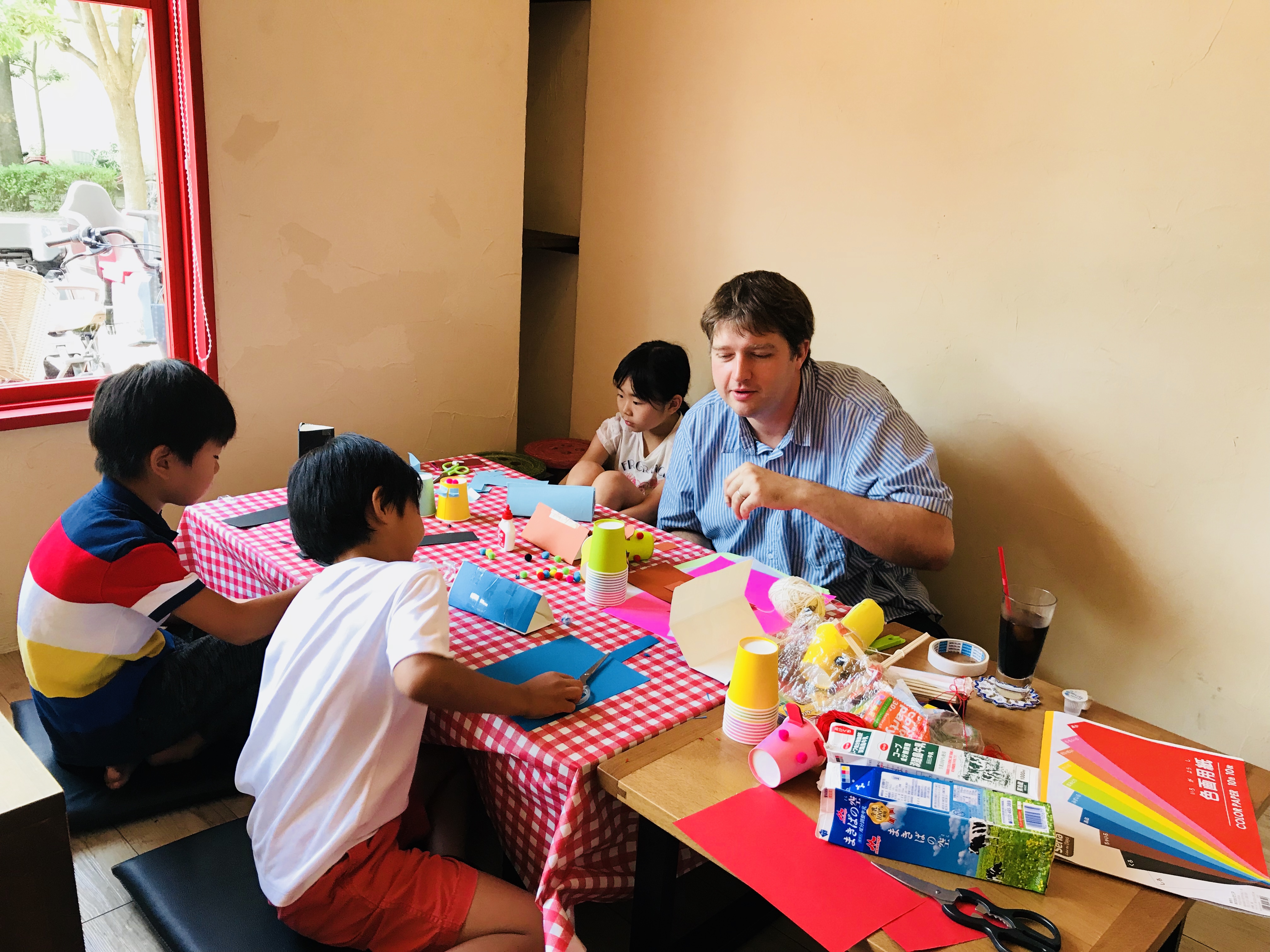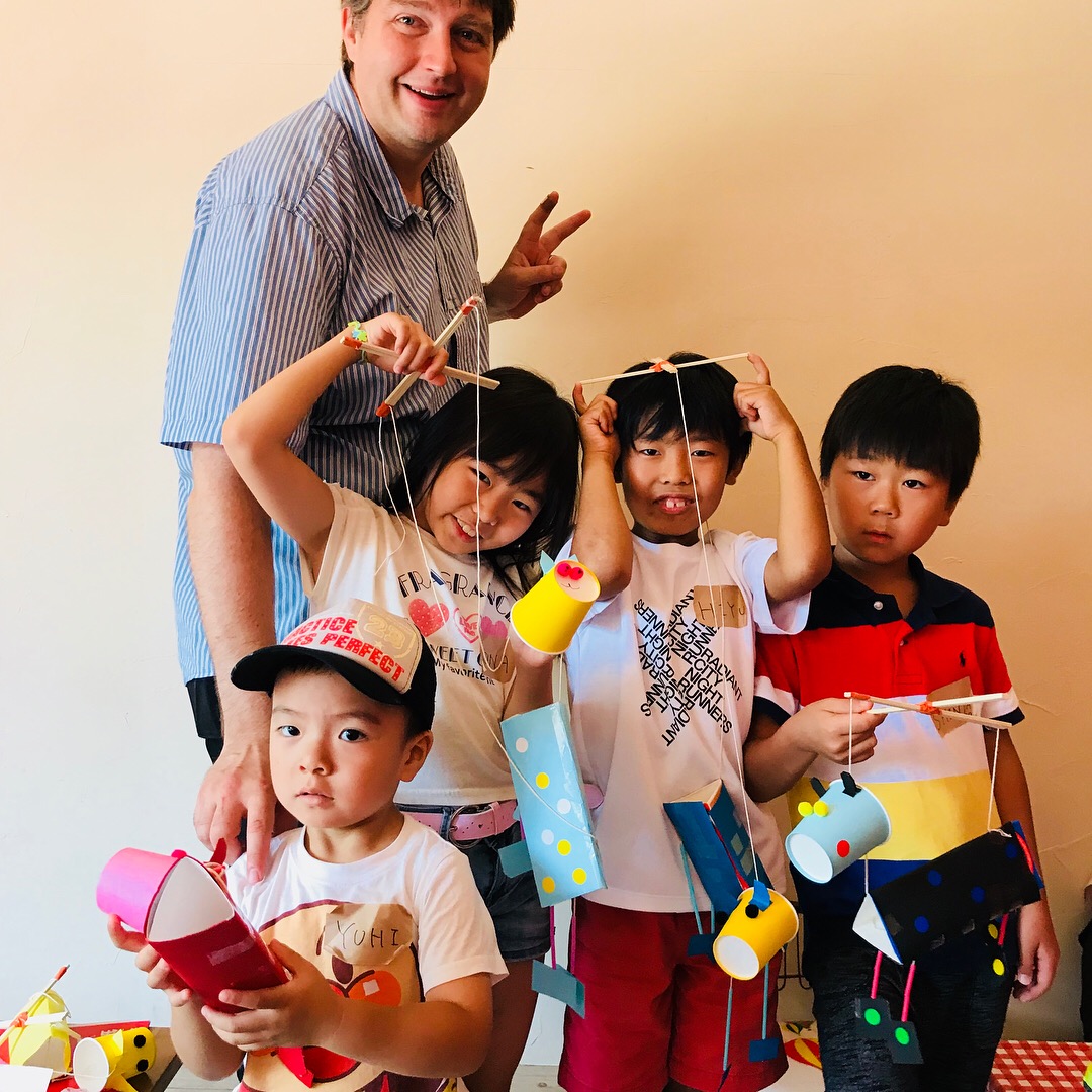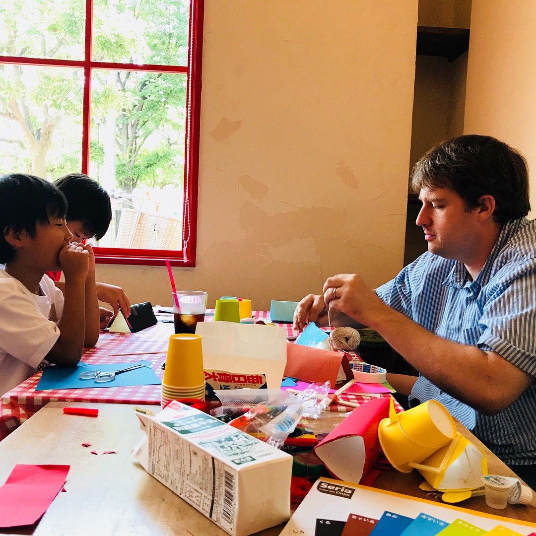 DIY工房『Osaka Maker Space』を運営する、アメリカ出身の陽気で明るいDIYマスター“ライアン先生”と一緒に英語でワイワイおもちゃを作りました♪