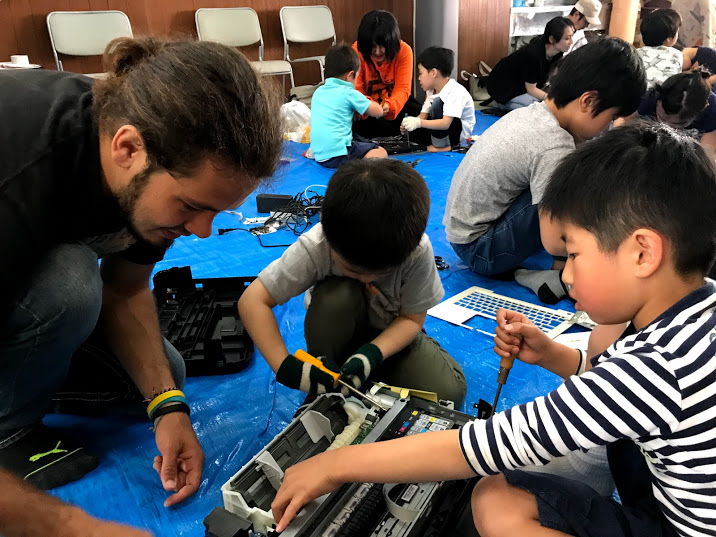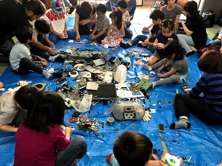 STEAM教育のイベントとして、英語アート!家電分解イベントを大阪で開催しました🛠⚙️🔧 機械好きの外国人二人が講師を担当、ALL英語で行われました。