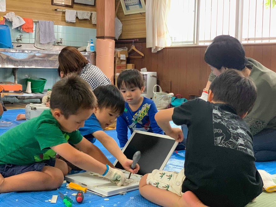 普段はおもちゃを分解して怒られることもあるけど、この日は、パソコン、炊飯器、ステレオなどの家電を思いっきり大分解😁
